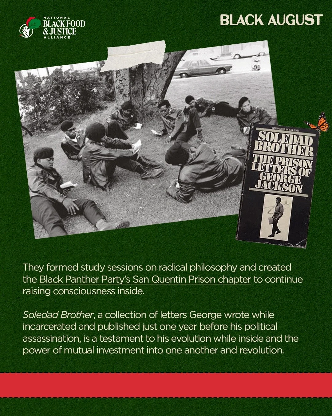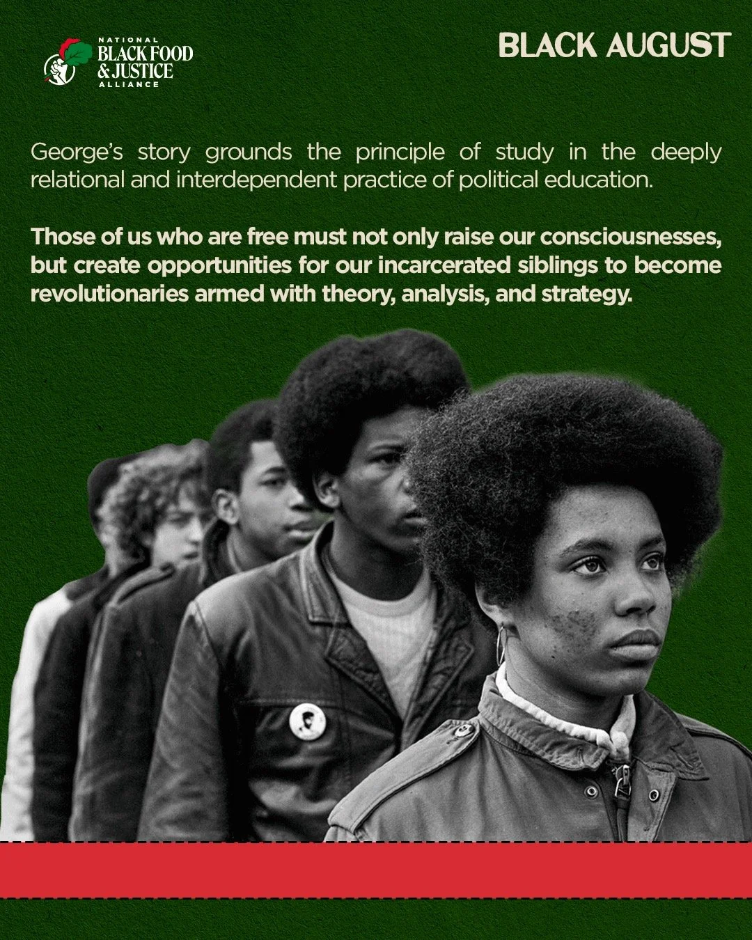 Throughout the month of August, the National Black Food and Justice Alliance will share deeper analysis and practices for studying, fasting, training, and fighting for political prisoners, prisoners of war, and incarcerated siblings amid these conditions. We invite you to practice relationally, face to face, and in community to support the movement and embody how the struggle for abolition is not separate from our own. Please explore this blog for in-person opportunities that may be in your local area.