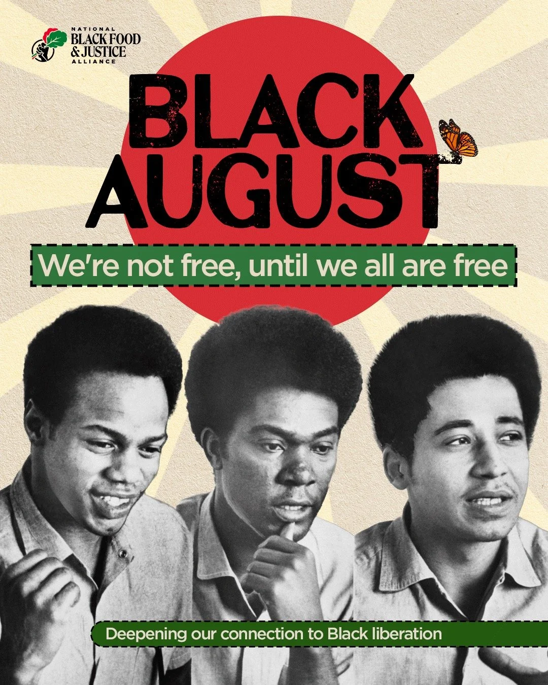 Since its inception by the Black Guerrilla Family in San Quentin State Prison in California on August 21, 1979, Black August has served as a commemorative month to honor the righteous freedom fighters who have rebelled against the state. Their rebellion was in response to the brutal conditions of incarceration, the targeted assassinations of Black revolutionaries like George Jackson, and the violent systems of white supremacy, capitalism, and imperialism that continue to criminalize Black resistance and the struggle for self-determination.